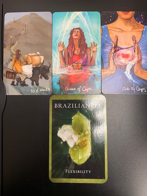 The Oracle Card I pulled made me laugh because I will need flexibility to achieve the desired outcome. I’ve been stubbornly collecting these wands, getting more and more bogged down rather than seeing that I have the flexibility to pick them up AND put them down. I’m trying to be all the things and that leaves no space for magick or divine timing. My allowing flexibility in gives me the space to prioritize my wands and re-prioritize as needed. Flexibility also opens the door for better decisions, inner peace, magick and that delicious divine timing to occur, for more ease in my day to day.